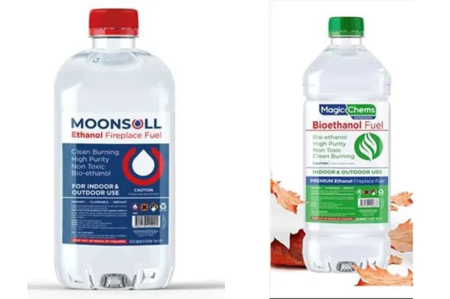 The CPSC said in a recall notice for the fuel bottles: “This recall involves Demlar’s bottles of MoonSoll-branded ethanol and Magic Chems-branded bioethanol fuel, used for tabletop fire pits, fireplaces, stoves and burners. The clear fuel bottles have a red or green cap. They were sold individually or as a pack of three and in 500-milliliter and 1,000-milliliter capacities. The brand name and capacity are printed on the front of the bottle’s label.”
